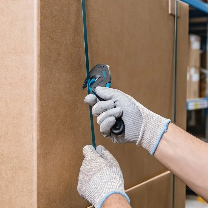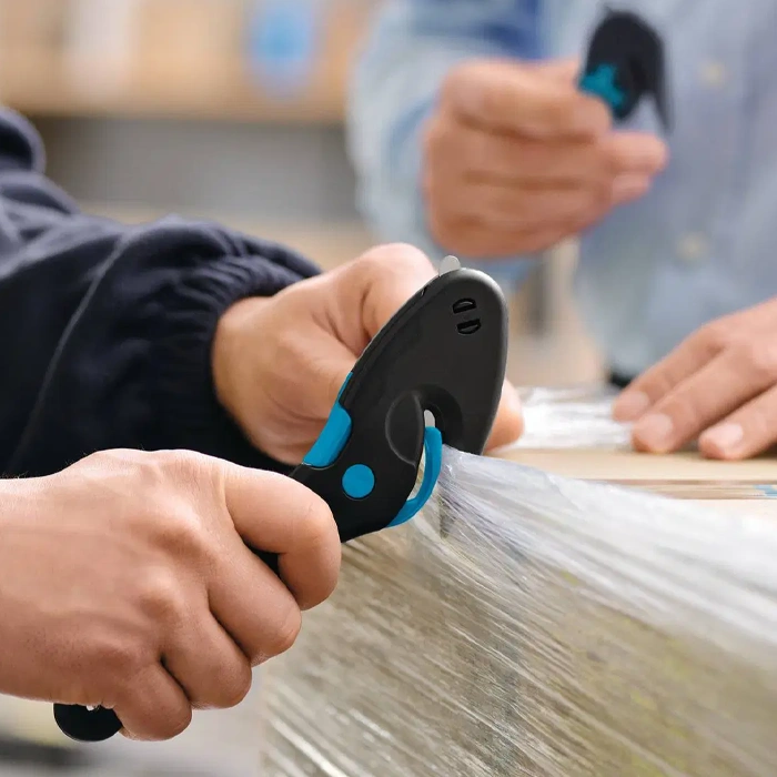 It’s all easy. It’s all safe.The SECUMAX EASYSAFE convince with its special features. The prominent and pointed nose of the cutting tool easily pierces plastic sacks and film-wrapped pallets. The concealed blade easily cuts the sacks and film. An integrated material guide makes it easier to cut thin film and paper sheets; even single layers won’t jam. What about thin textiles or plastic strapping band? Not a problem for the concealed blade.