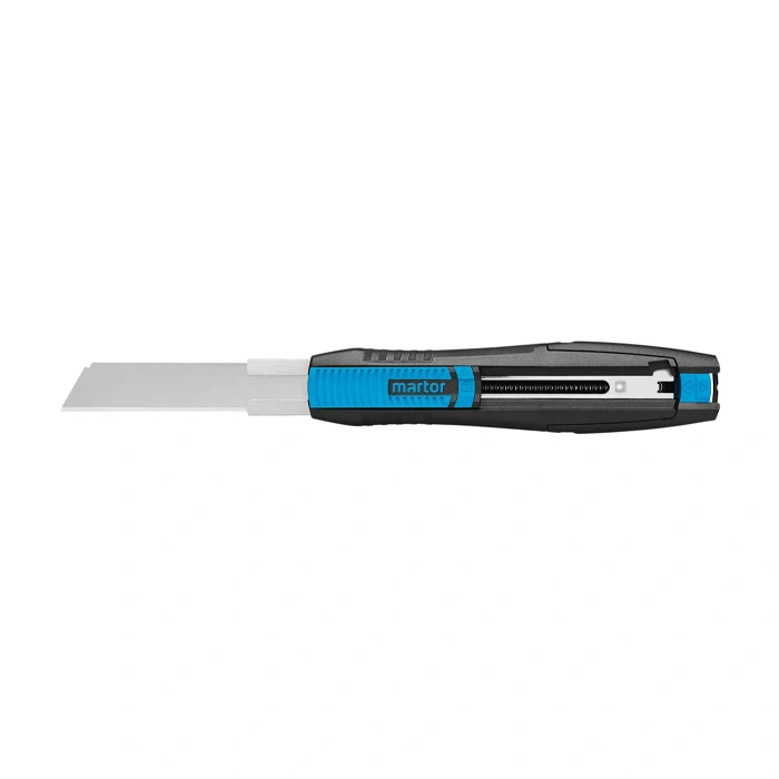 A long bladed safety knife? MARTOR has one. The SECUNORM 380 is the first safety knife worldwide featuring a blade extension length of almost 8 cm as well as automatic blade retraction. If you are looking for a low risk alternative to the usual fixed blade cutter, this is it. And its ideal for thicker materials. A safety lock also prevents the blade from unintentionally extending.