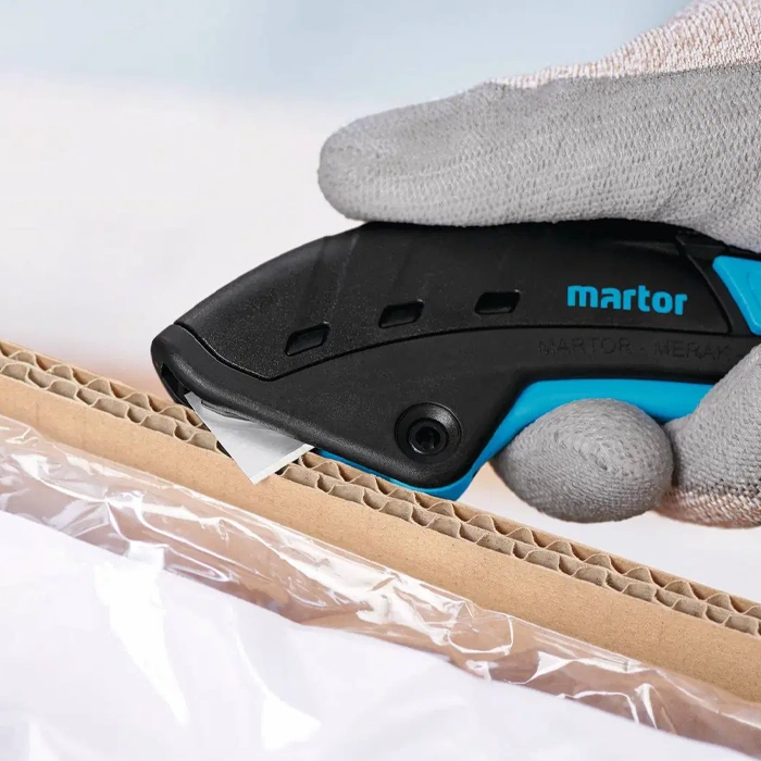 The SECUPRO MERAK is our practical squeeze-grip safety knife with fully automatic blade retraction. With SECUPRO MARTEGO’s ‘little brother’ we have thought about one thing in particular: you. The lightweight and user friendly SECUPRO MERAK lets you work safely, with little risk of cutting exhaustion. And there’s much more: thanks to a shallow cutting depth, your goods are also well protected. And you get protection too, because the blade retracts into the handle at just the right moment.